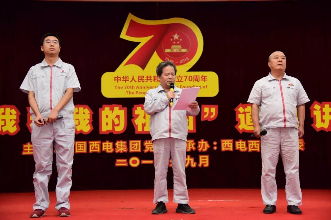活動中,展播了各單位《我和我的祖國》系列視頻,與會同志同唱了愛國歌曲《五星紅旗迎風(fēng)飄揚》,聆聽了詩歌朗誦《我的祖國》和西電故事《爭做頂梁柱,騰飛中國龍》,欣賞了展現(xiàn)工人力量的舞蹈表演《奮進新時代》,三位“建國”同志結(jié)合個人成長、企業(yè)變遷、祖國發(fā)展談了自己的切身感悟,西電西變、西開有限兩家單位分別作了關(guān)于道德講堂的經(jīng)驗交流,與會人員共同欣賞了歌伴舞《我和我的祖國》。現(xiàn)場活動氣氛熱烈,大家情緒高昂,故事生動感人,歌聲優(yōu)美嘹亮。