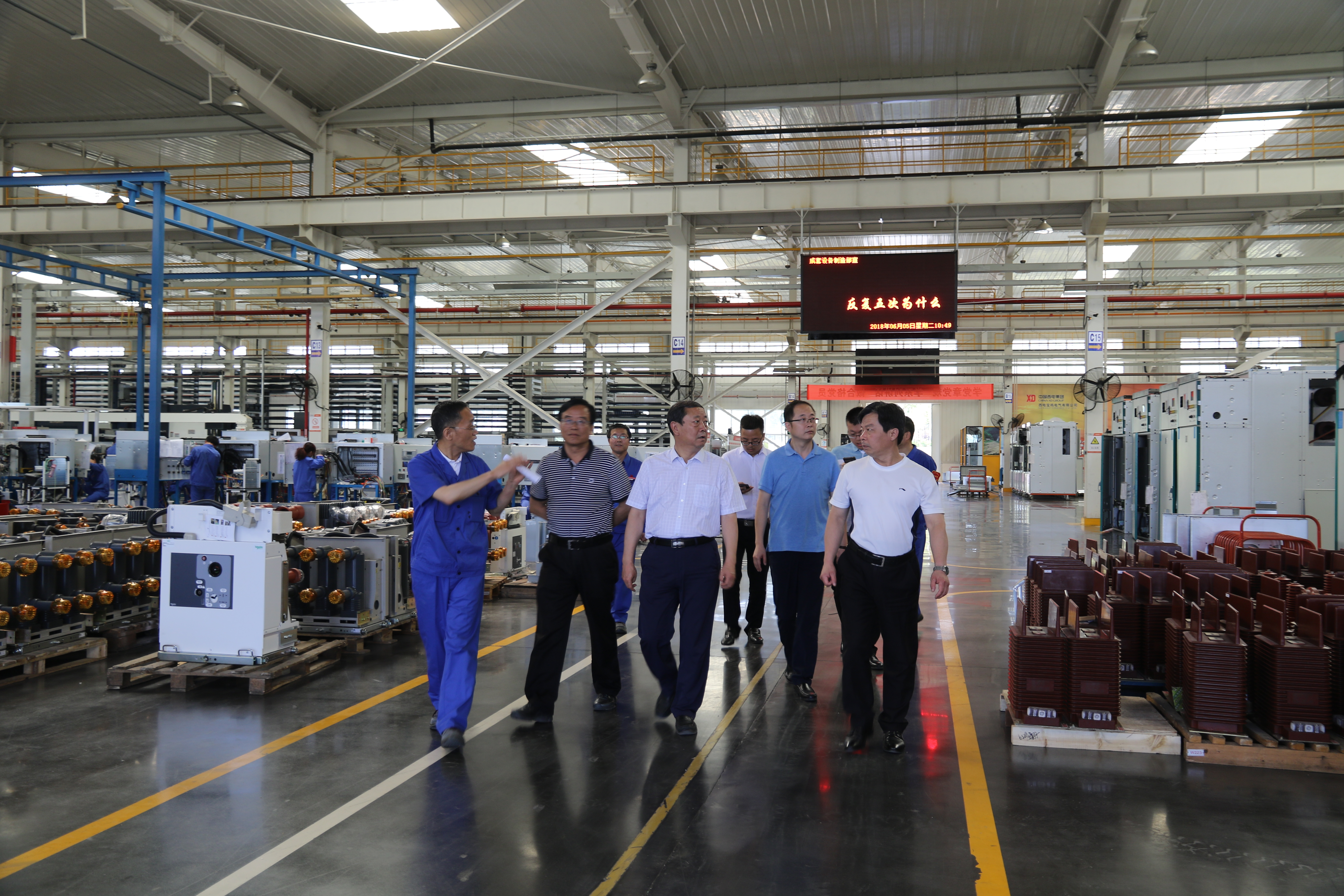 2018年6月5日上午,寶雞市高新區(qū)管委會(huì)副主任王天勛一行七人蒞臨西電寶雞電氣進(jìn)行參觀考察。在公司執(zhí)行董事和主管生產(chǎn)的副總經(jīng)理陪同下,參觀了開關(guān)柜成套裝配產(chǎn)線、斷路器生產(chǎn)線。召開了座談會(huì),聽取了公司近幾年在黨建、市場(chǎng)營銷、新品研發(fā)、智能制造等方面的發(fā)展情況及公司十三五戰(zhàn)略發(fā)展規(guī)劃。