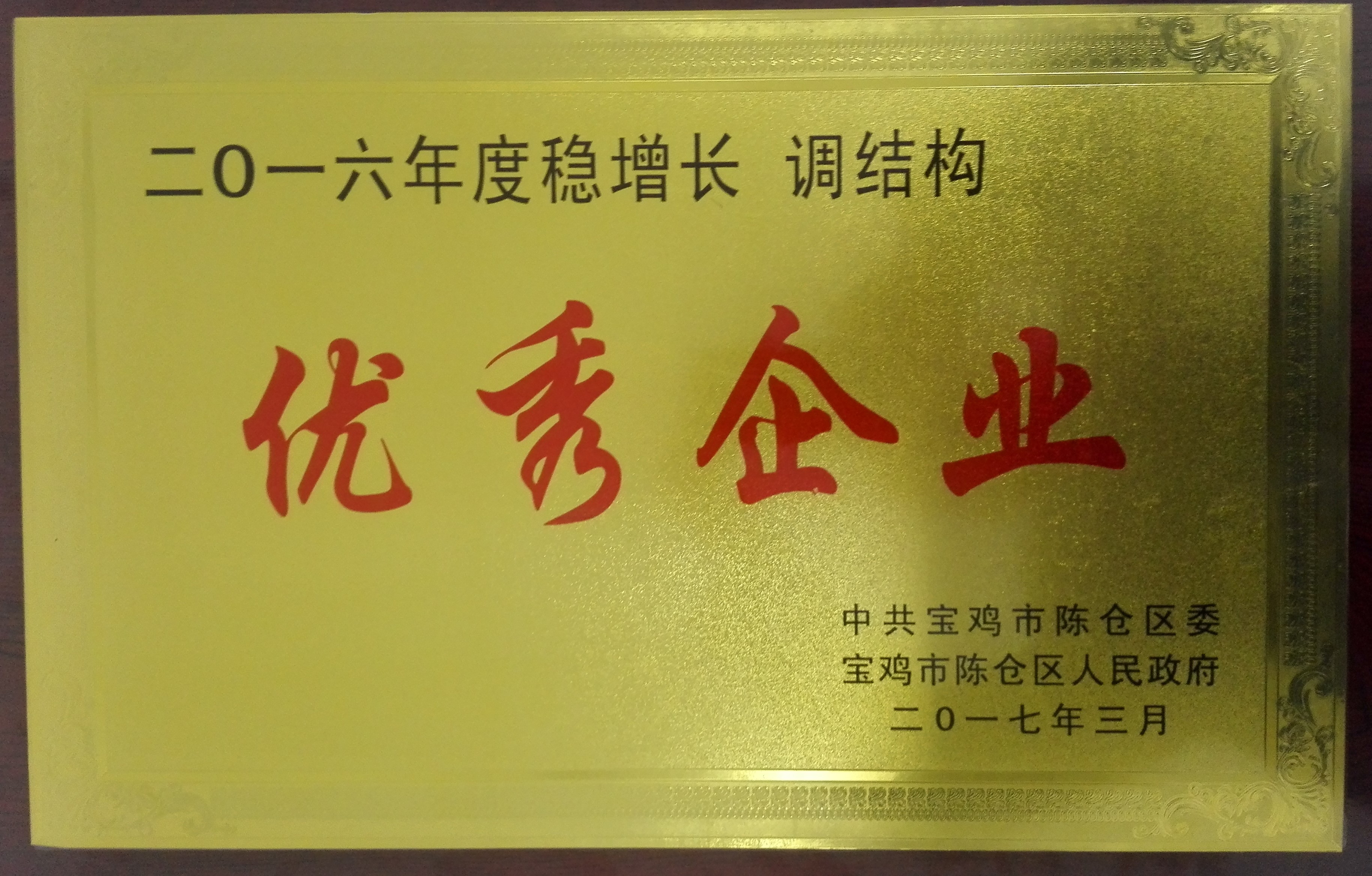 3月15日,我公司榮獲寶雞市陳倉區(qū)“2016年度工業(yè)穩(wěn)增長、調(diào)結(jié)構(gòu)優(yōu)秀企業(yè)”。