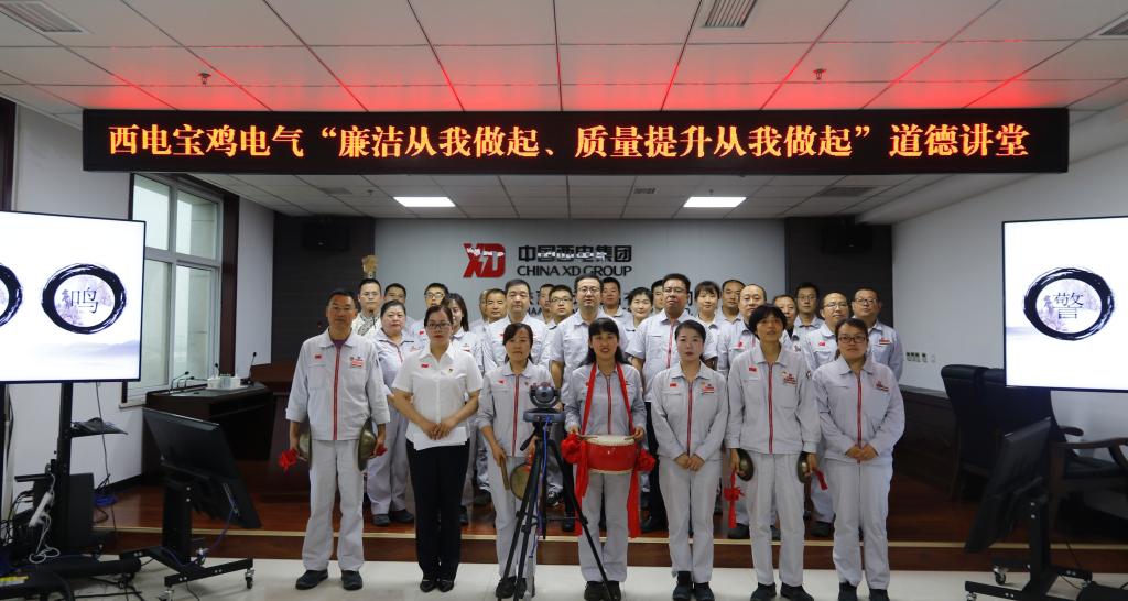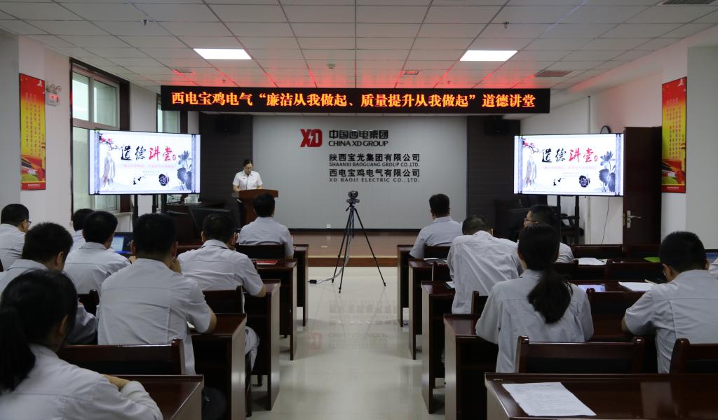 為進(jìn)一步貫徹落實(shí)習(xí)近平新時(shí)代中國特色社會主義思想,踐行社會主義核心價(jià)值觀,推進(jìn)黨史學(xué)習(xí)教育、黨風(fēng)廉政建設(shè)和反腐敗工作進(jìn)支部、進(jìn)班組、進(jìn)崗位,以崇德尚廉的精神面貌慶祝建黨100周年,同時(shí),為進(jìn)一步將“質(zhì)量月”活動引向深入,9月24日下午,寶光集團(tuán)黨委所屬西電寶雞電氣黨委主辦、質(zhì)量物資黨支部承辦了“廉潔從我做起,質(zhì)量提升從我做起”主題道德講堂。西電寶雞電氣黨委副書記、總經(jīng)理余明星,寶光集團(tuán)(西電寶雞電氣)黨委副書記、紀(jì)委書記姚書勤出席道德講堂。